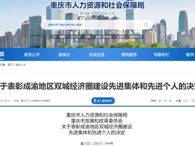 8月27日,重庆市人力资源和社会保障局、重庆市发展和改革委员会对为成渝地区双城经济圈建设做出杰出贡献的各区县(自治县)人力社保局、发展改革委,两江新区组织人事部...